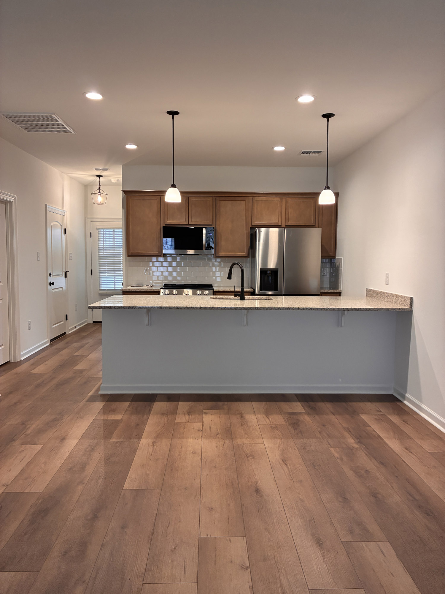 Each townhome includes a private garage, covered patio, and contemporary features such as recessed lighting in the kitchen and living area, a walk-in closet in the primary bedroom, and a main bathroom with a double vanity and a large soaking tub. Whether you’re seeking your first home, downsizing, or looking for a low-maintenance living option, Willow Brook delivers both style and livability in a prime location.